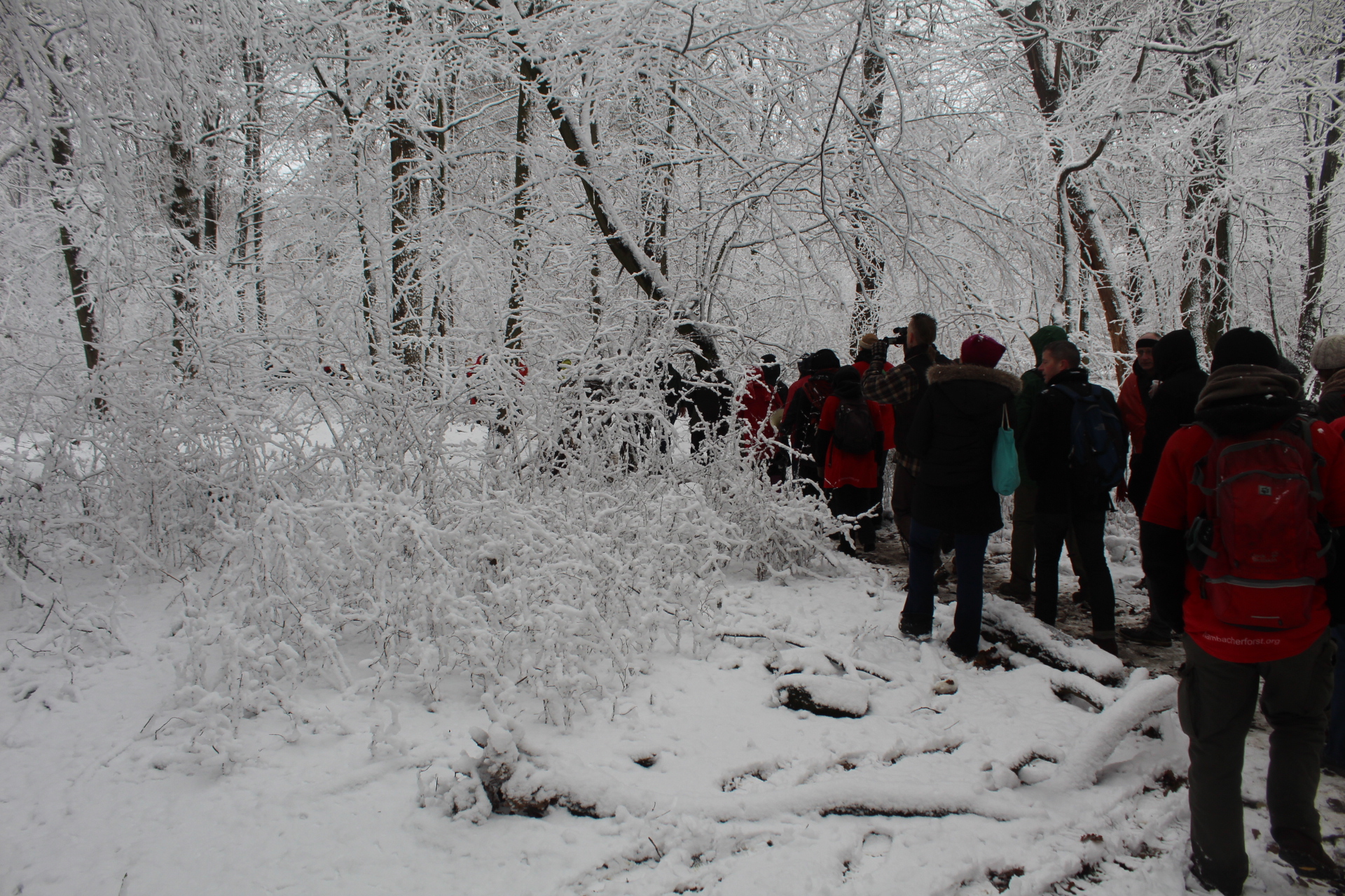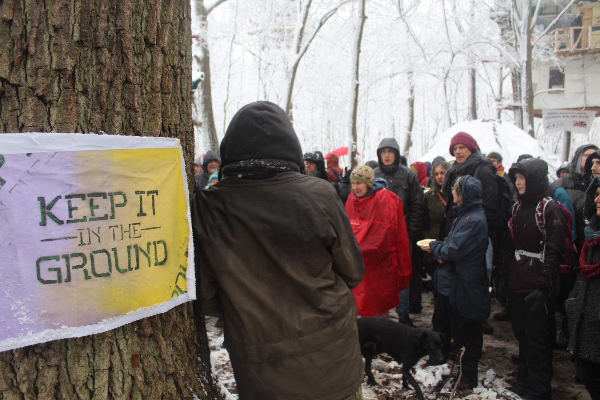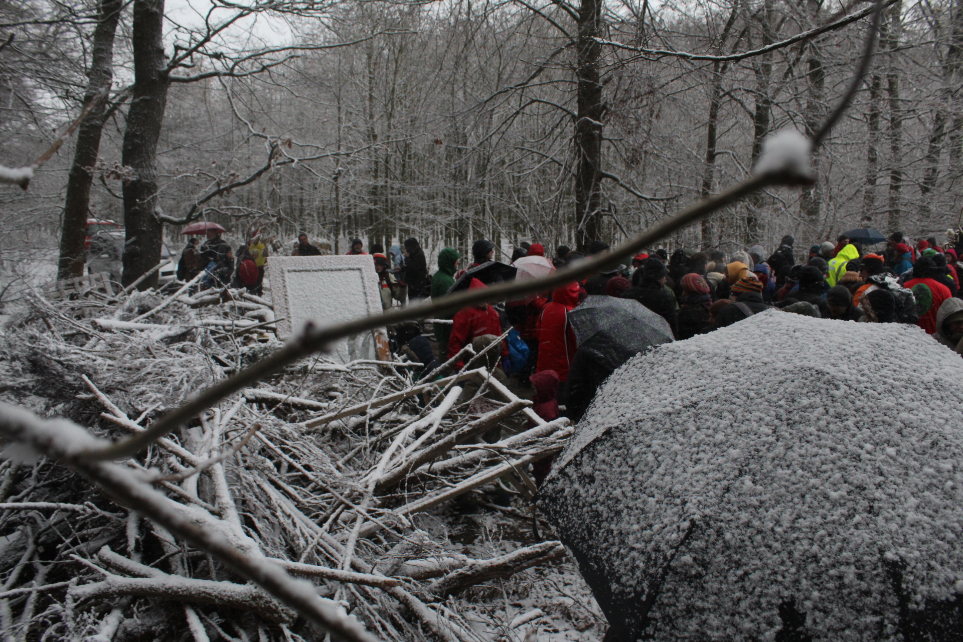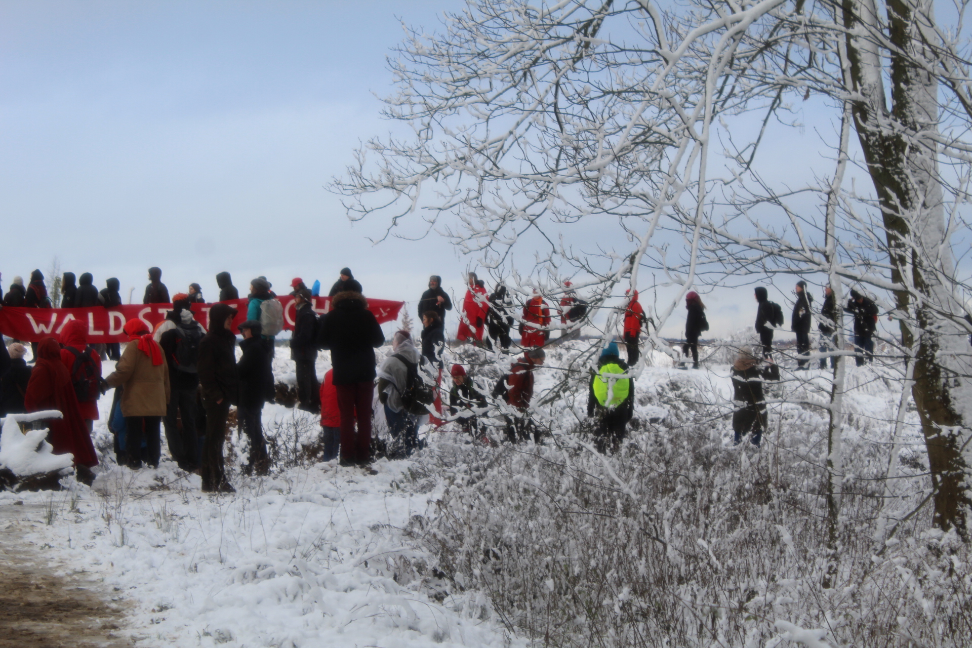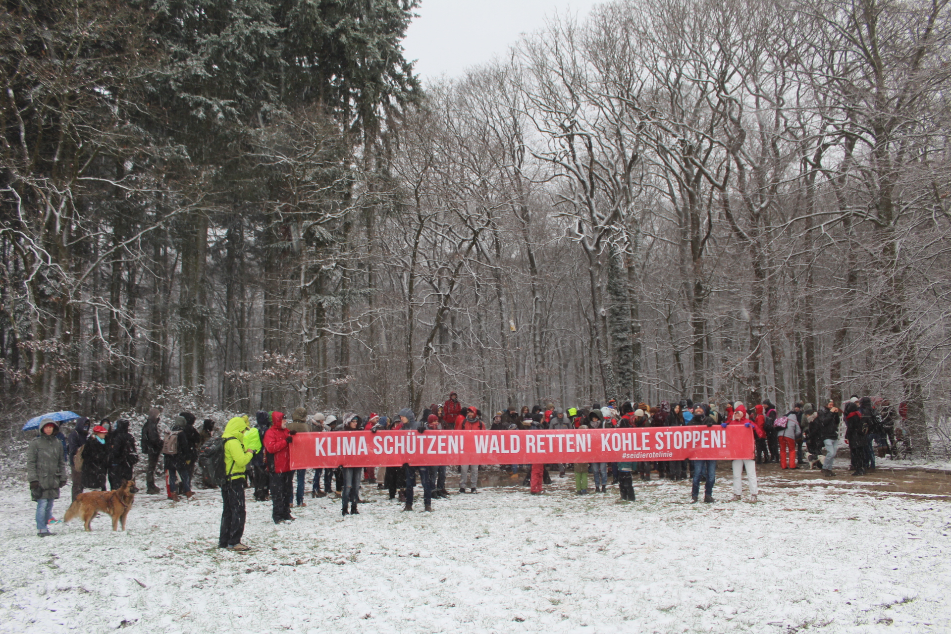Today’s walk in the Forest has attracted over 400 people reflecting a wave of popular support sweeping not just the region but all of Germany and from around the world. This is happening at the time when the rulling parties are no loger able or willing to hold an argument on exiting from coal and its effects on the climate but istead have become an extension of RWE special interests and are trying to redirect attention and justify large police actions to destroy the last of Hambi by talk of extremism and violence. All as an attempt to criminalize the whole climate justice movement employing such pesky tactics as road blockades and locking on to planet and climate destroying equiment. Many supporters realized that this is one of the last chances to see the world unique bionome of Hambacher Forest in its present shape if at all. They have expressed their gratitude by sharing home-baked cakes, lots of other food, warm clothing and other supplies with the unarmed “extremists” most of whom do not have firearms training both of which can not be said for the hundreds of armed cops that will arrive in Hambach to help RWE destroy the forest despite wide-spread opposition bringing a reality of climate unstability that in a logic so typical of disaster-capitalism is in turn used to justify further progressive militarization of police forces and higher levels of repression.