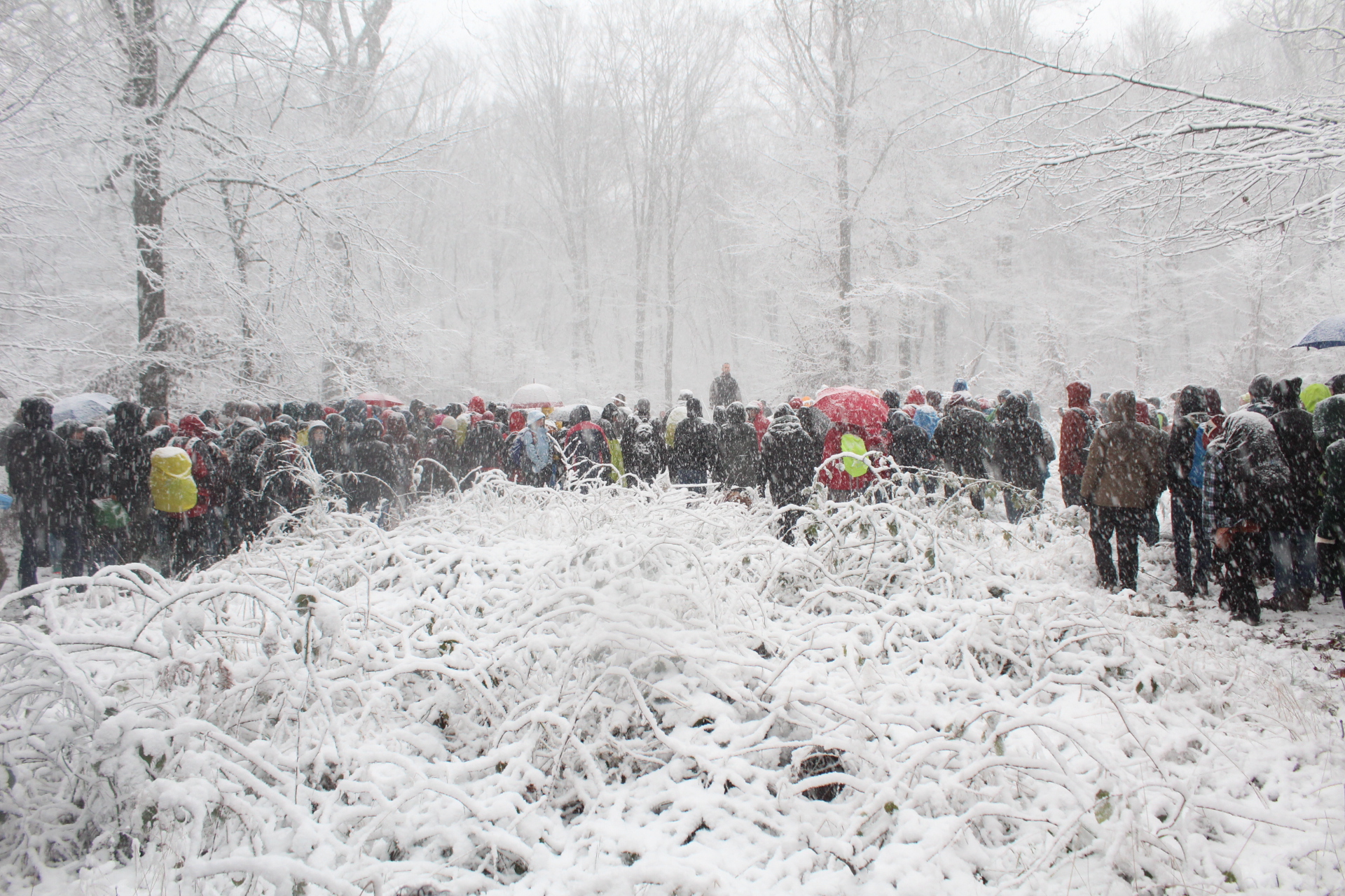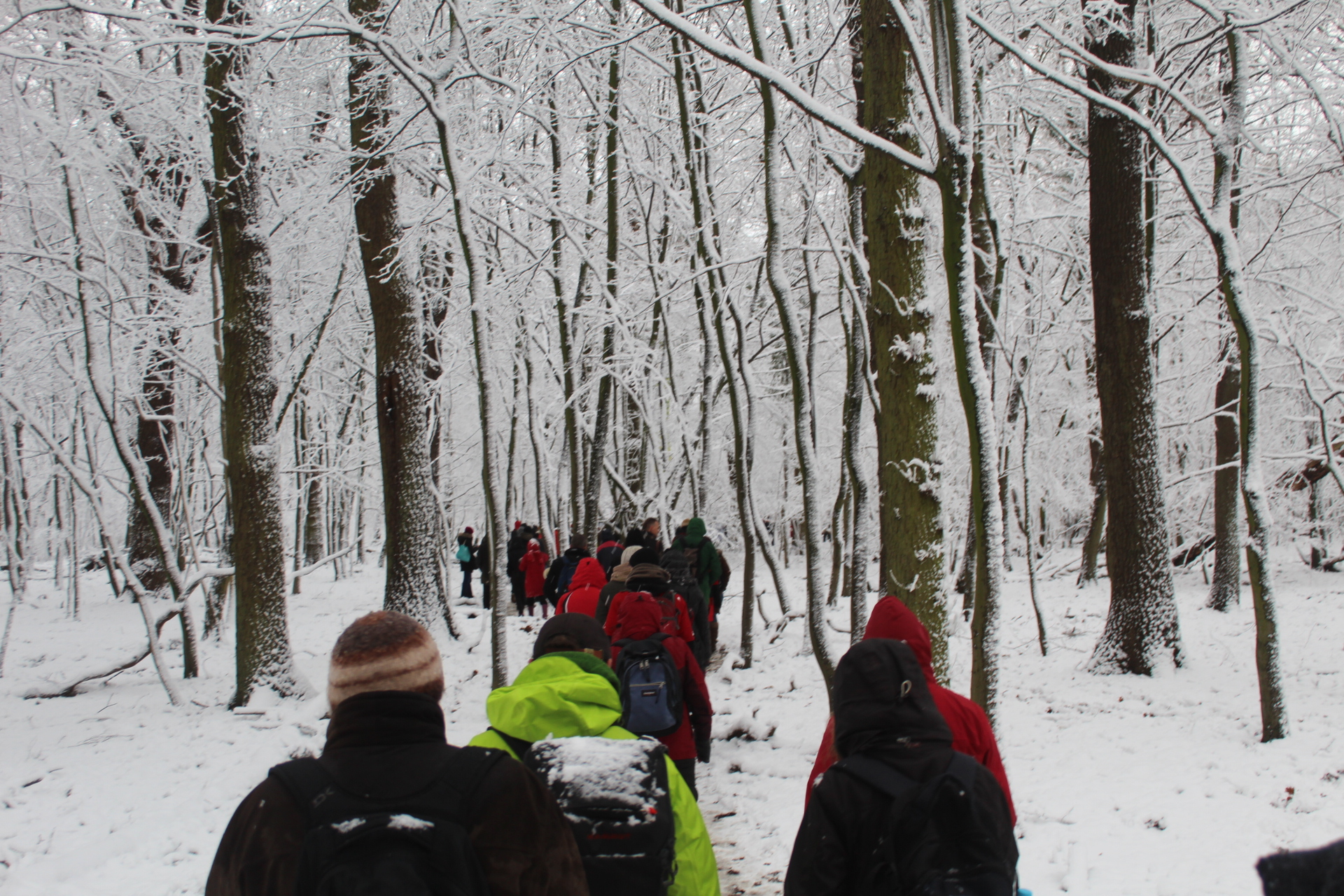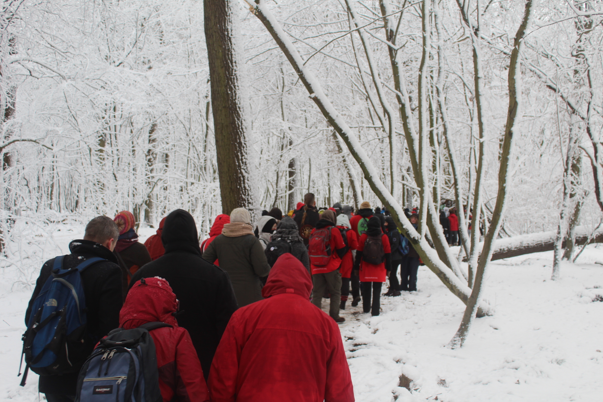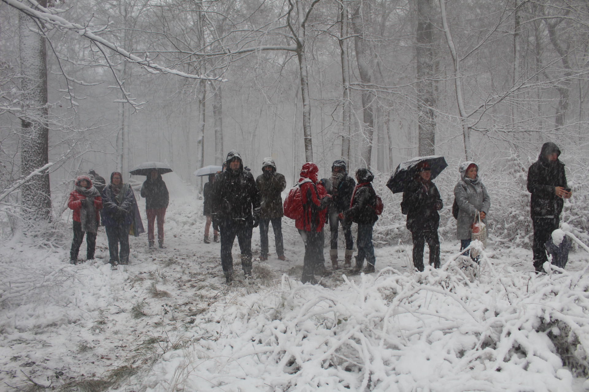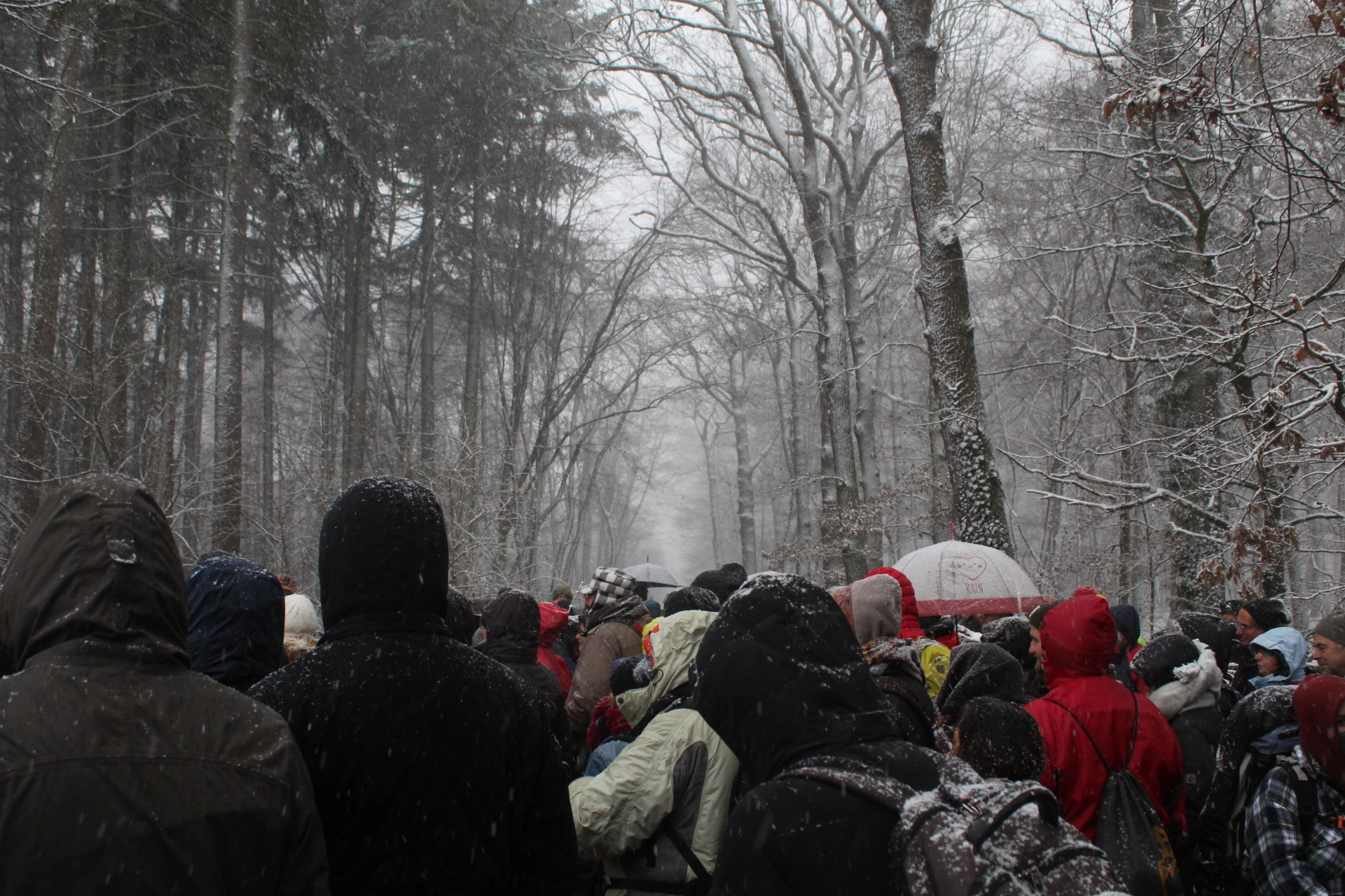 Today’s walk in the Forest has attracted over 400 people reflecting a wave of popular support sweeping not just the region but all of Germany and from around the world. This is happening at the time when the rulling parties are no loger able or willing to hold an argument on exiting from coal and its effects on the climate but istead have become an extension of RWE special interests and are trying to redirect attention and justify large police actions to destroy the last of Hambi by talk of extremism and violence. All as an attempt to criminalize the whole climate justice movement employing such pesky tactics as road blockades and locking on to planet and climate destroying equiment. Many supporters realized that this is one of the last chances to see the world unique bionome of Hambacher Forest in its present shape if at all. They have expressed their gratitude by sharing home-baked cakes, lots of other food, warm clothing and other supplies with the unarmed “extremists” most of whom do not have firearms training both of which can not be said for the hundreds of armed cops that will arrive in Hambach to help RWE destroy the forest despite wide-spread opposition bringing a reality of climate unstability that in a logic so typical of disaster-capitalism is in turn used to justify further progressive militarization of police forces and higher levels of repression.