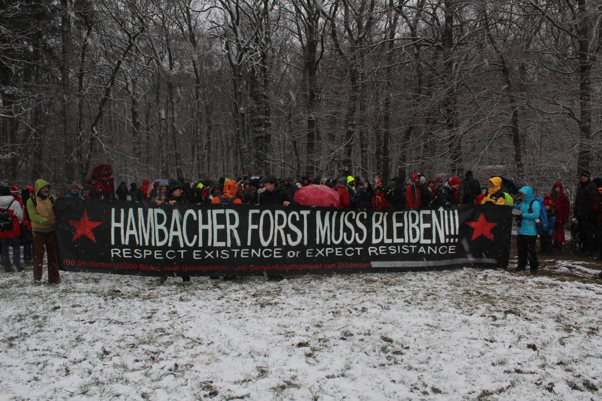 Speciall Thank-You also to the oldest 93 year participant of the walk who has knitted warm mittens and hat as a special gift for the defeders of ancient Hambacher Forest: THANK YOU!!! VIELEN DANKE!!!